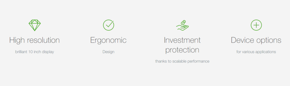 The KeTop T150 (portrait format) and KeTop T155 (landscape format) offer capacitive multi-touch screens, providing intuitive operation, excellent ergonomics, and a seamless user experience. These high-end interfaces bring the familiar ease of personal device interaction to robust industrial settings. Depending on requirements, the KeTop